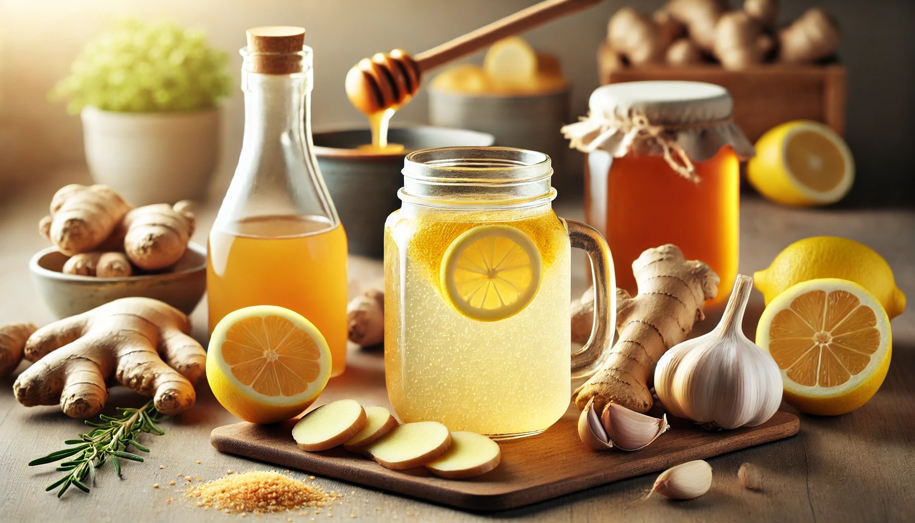 В кастрюлю добавьте соки имбиря и лимона, пюре из чеснока и яблочный уксус. Поставьте смесь на слабый огонь и варите в течение 30 минут.