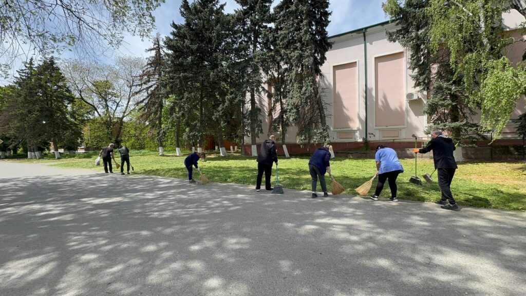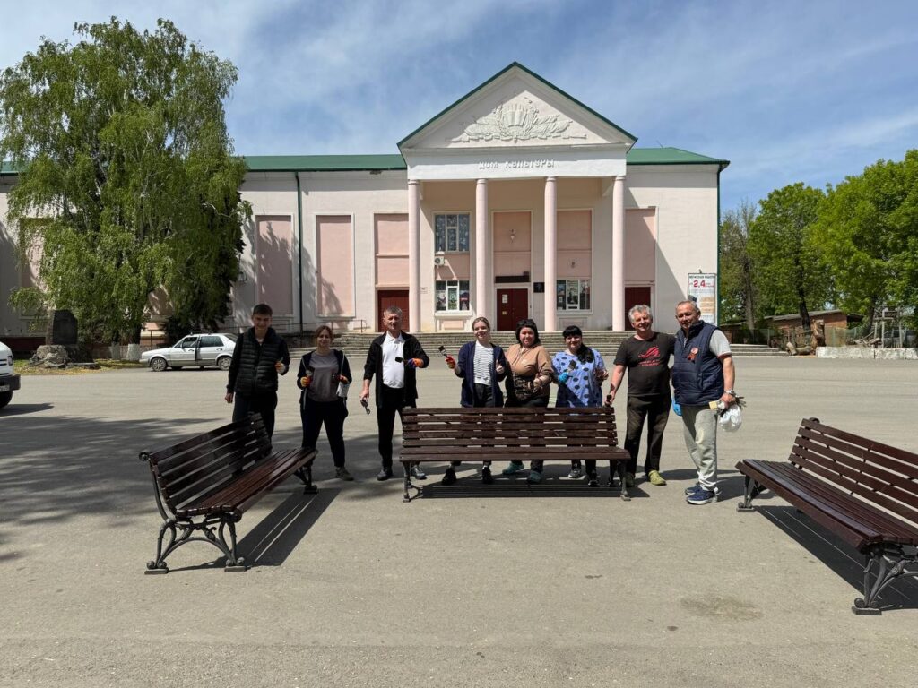 В станице Чебургольской под звуки первых майских мелодий и патриотических песен работники местного ДК вместе с волонтерами добровольческого движения «Сети добра», депутатами поселения и юными участниками хорового коллектива «Звонкая капель» вышли на субботник.