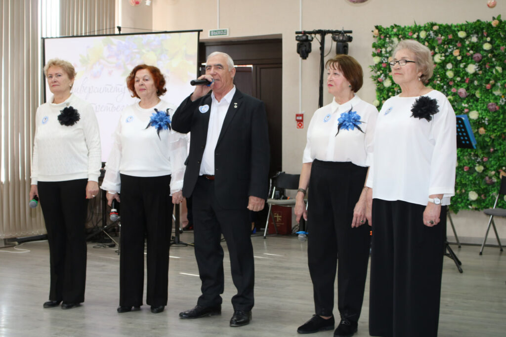 Творческие поздравления в этот день неунывающим студентам подарили артисты Полтавского и Октябрьского культурных центров. Но и сами слушатели удивили своими талантами. Светлана Кришталь сочинила стихи, посвященные всем факультетам. А участницы любительского объединения «Жить здорово» под руководством Розы Кондраковой представили яркий хореографический номер.