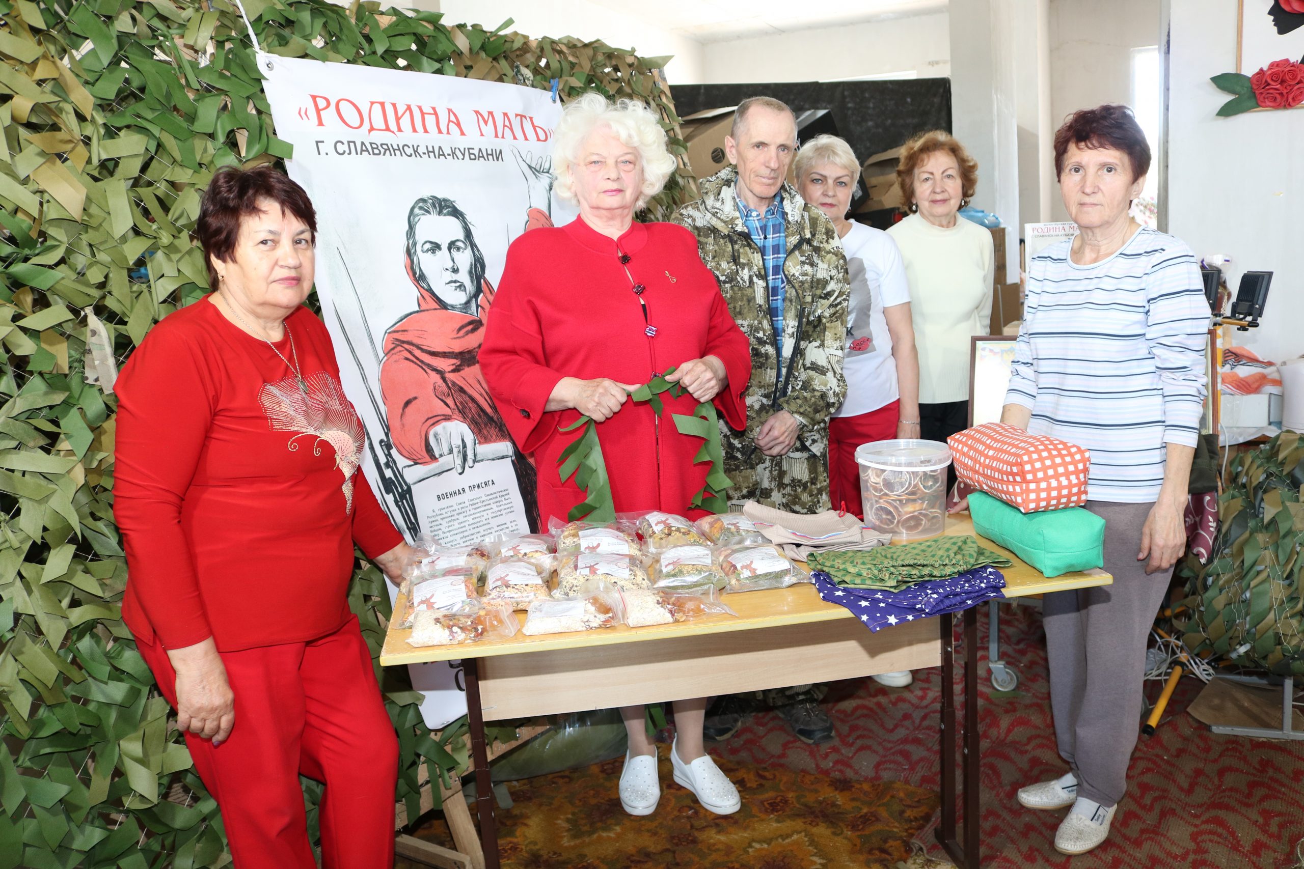 Сначала здесь занимались только сбором гуманитарки и пошивом белья и носилок. Собирались в небольшом помещении за городом. Добираться туда могли не все. Да и для плетения масксетей было слишком тесно. Славянская администрация выделила группе «Родина-Мать» площадь попросторнее в одном из торгово-бытовых комплексов в центре города. И волонтеры, что называется, вздохнули полной грудью.
