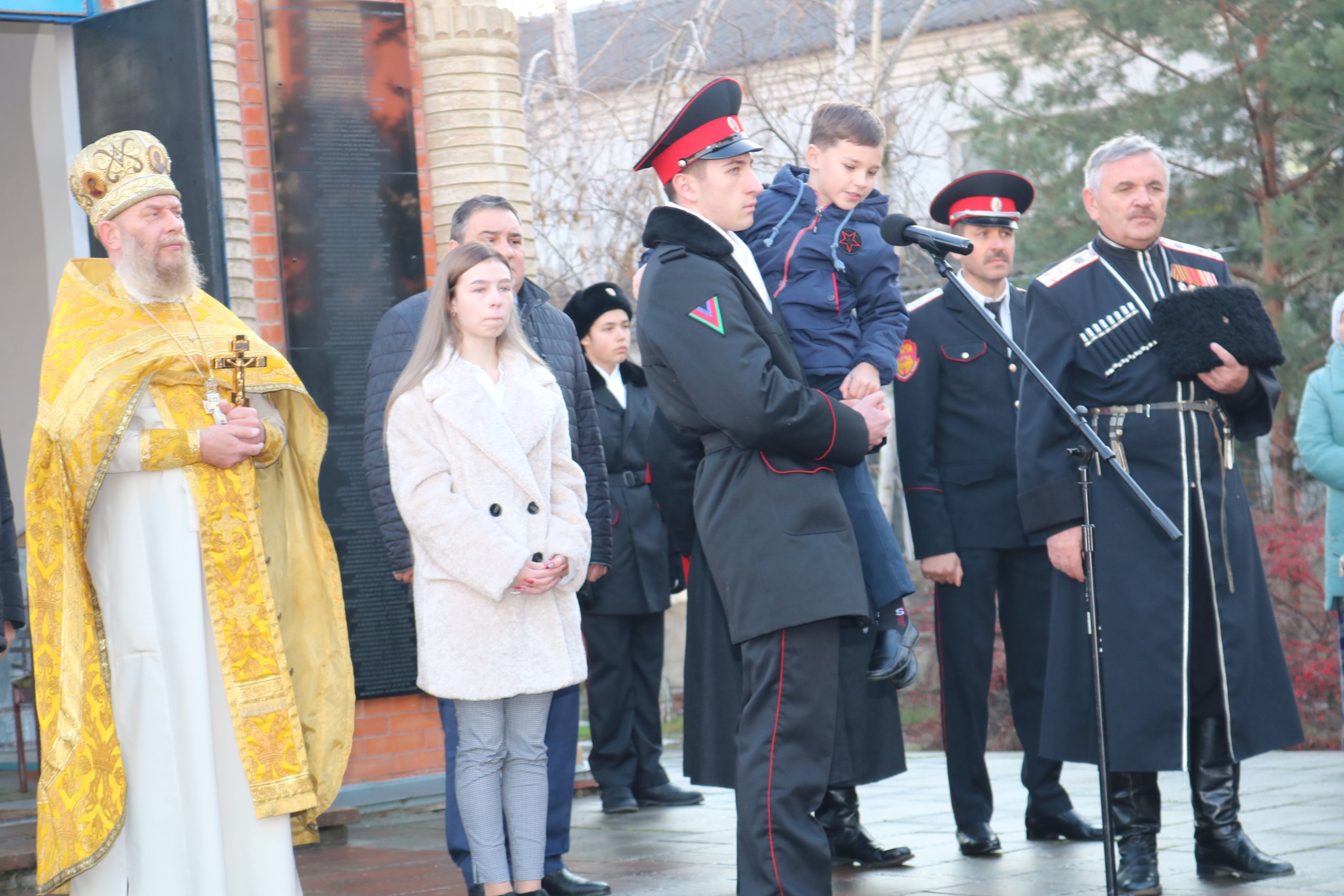 К памятнику-часовне в 9 часов утра собрались делегации из всех станичных и хуторских казачьих обществ района, жители Полтавской, ученики классов казачьей направленности. В Почетный караул встали члены казачьего Поста №1.