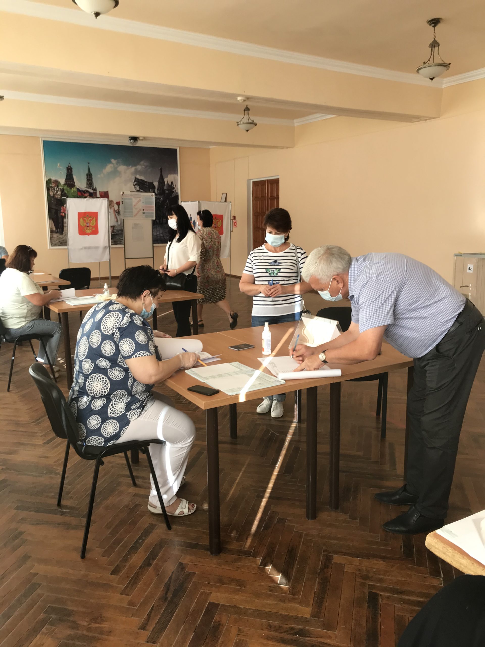 Избирателям измеряют температуру, обрабатывают руки антисептиком, выдают ручки, перчатки и маски всем тем, у кого их не оказалось. Разделены маршруты движения на участках.