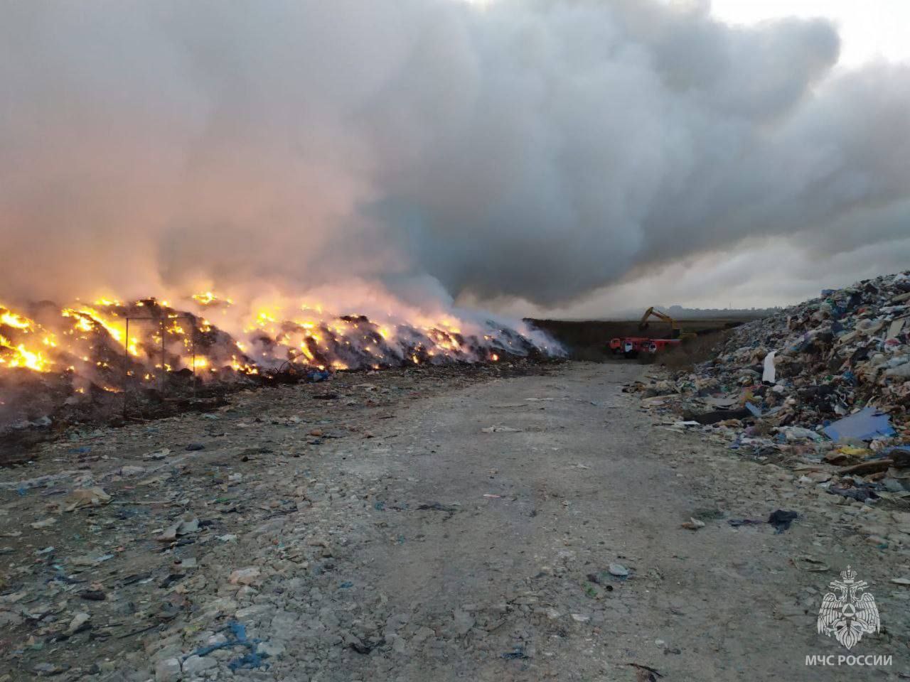 По состоянию на 10:30, на полигоне работают службы пожаротушения, сотрудники МЧС. Открытого горения на поверхности полигона не наблюдается.