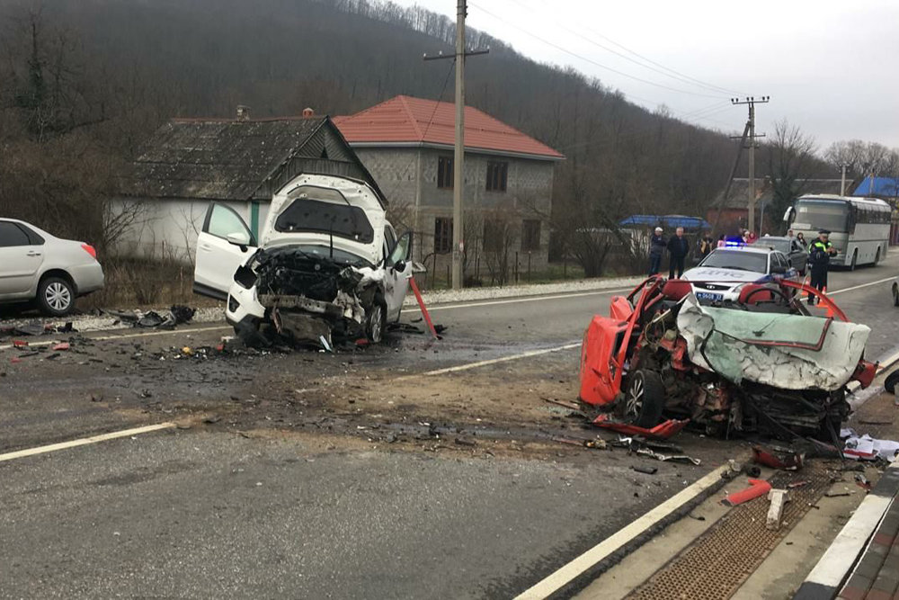 Автомобили столкнулись лоб в лоб и задели проезжающий рядом «Датсун». На месте аварии погиб один из трех братьев, бывший за рулем автомобиля. Второй брат и водитель «Мазды» скончались в «скорой помощи» по пути в медучреждение. Третий из братьев находится в тяжелом состоянии в реанимации, сообщили «Голосу правды» в городской больнице города Геленджика.